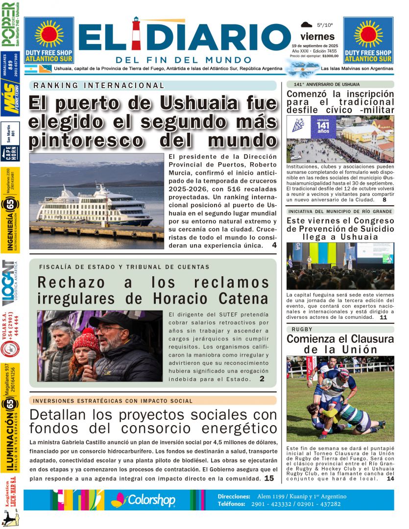 El presidente de la Dirección Provincial de Puertos, Roberto Murcia, confirmó el inicio anticipado de la temporada de cruceros 2025-2026, con 516 recaladas proyectadas. Un ranking internacional posicionó al puerto de Ushuaia en el segundo lugar ...