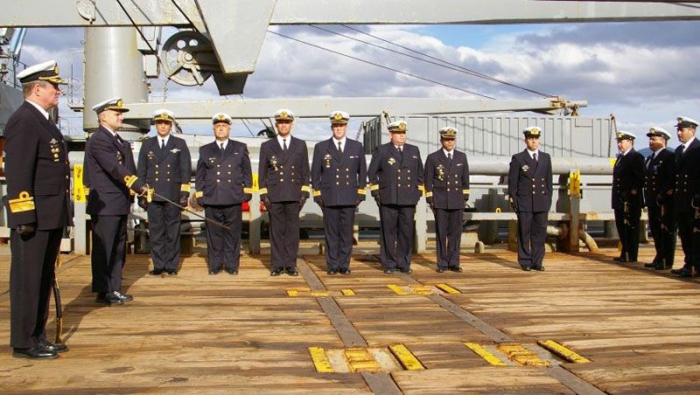 ste martes en una ceremonia encabezada por el Comandante del Área Naval Austral, Contralmirante Marcos Ernesto Henson, se llevó a cabo la ceremonia de cambio de Comandante del aviso ARA “Estrecho de San Carlos”, en la cubierta de la unidad.