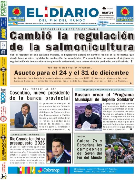 Con el respaldo de una ajustada mayoría, la Legislatura aprobó un cambio radical en la normativa que desde hace 4 años regulaba la producción de salmónidos. Por unanimidad se aprobó el ...