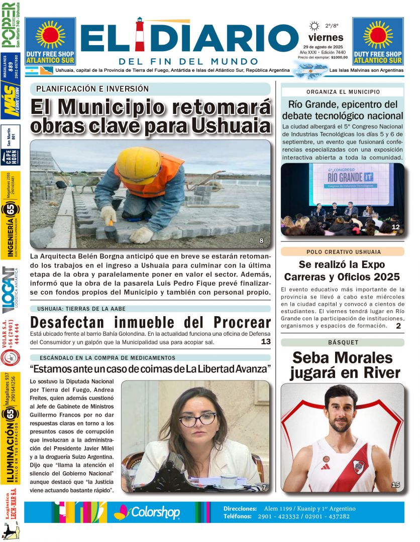 La Arquitecta Belén Borgna anticipó que en breve se estarán retomando los trabajos en el ingreso a Ushuaia para culminar con la última etapa de la obra y paralelamente poner en valor el sector. Además, informó que la obra de la pasarela Luis ...