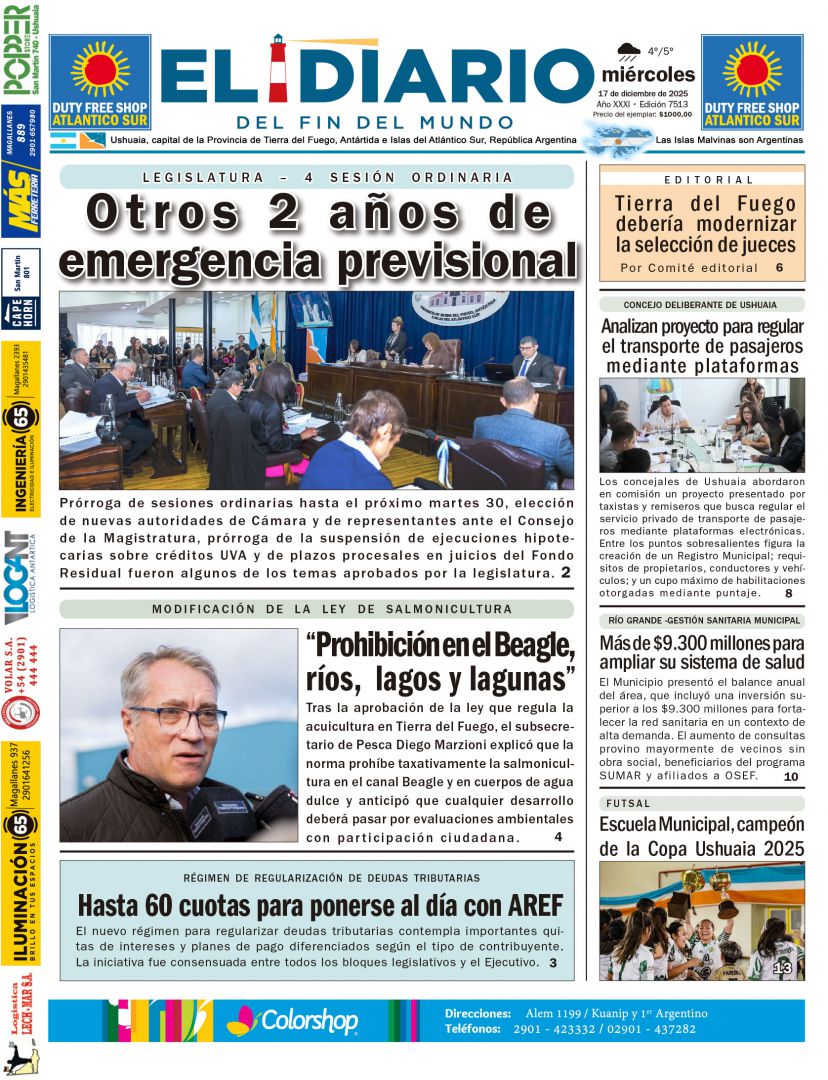 Tras la aprobación de la ley que regula la acuicultura en Tierra del Fuego, el subsecretario de Pesca Diego Marzioni explicó que la norma prohíbe taxativamente la salmonicultura en el canal Beagle y en cuerpos de agua dulce y anticipó que ...