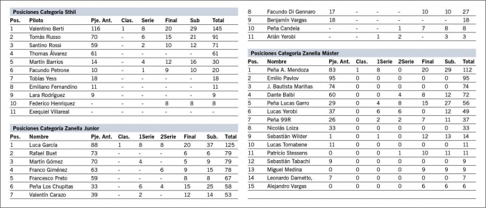 Cerrada la fecha, García encabeza tranquilo las posiciones con 125 unidades. La lucha franca está a pleno por la segunda colocación ya que Martín Gómez logró emparejar a Rafael Buet, ahora ambos con 79 puntos, y se sumó a ésta lucha; Giménez que quedó a sólo uno de diferencia de sus predecesores, y Francesco Preto que está a 9 de Giménez. Este segmento va a tener un final de campeonato muy apretado.