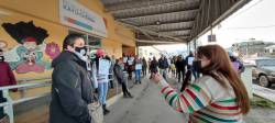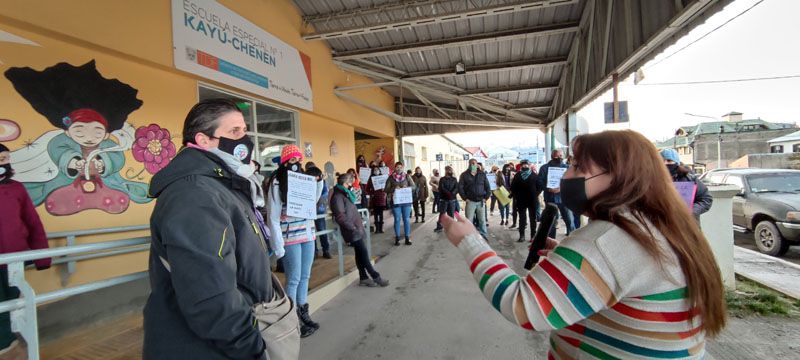 Avanzada la jornada, nuevamente se hizo presente Castillo a pedido del equipo directivo para que brindara explicaciones a los padres de alumnos que se dieron cita frente a la institución para reclamar por la educación presencial.